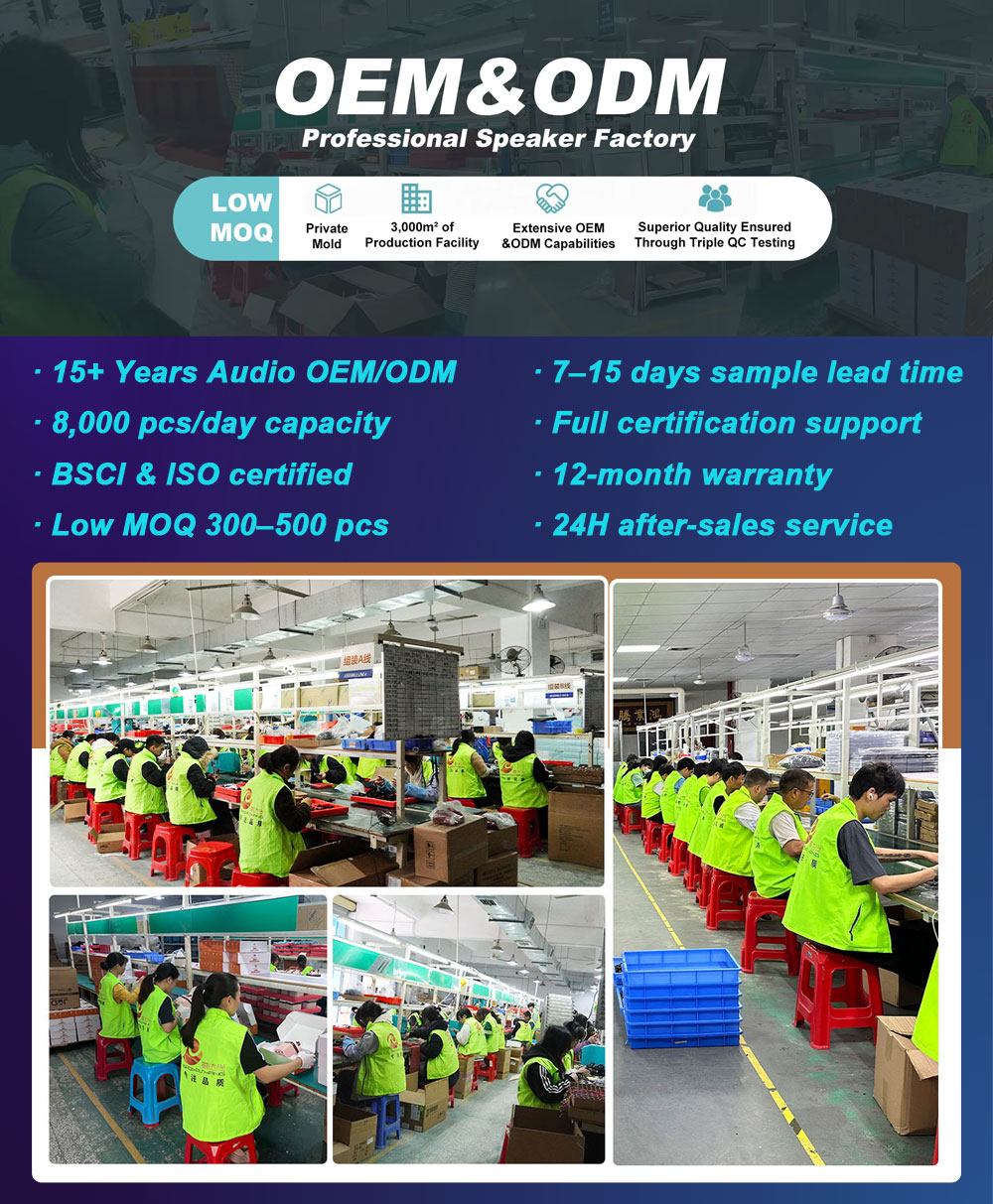 A: Yes, we have been deeply involved in OEM/ODM for over 15 years. We support customization in LOGO (laser engraving, silk printing), colors (Pantone colors), packaging (gift boxes, retail packaging), and functional aspects such as EQ sound effects, voice prompts, and button layouts. We also offer private mold development.