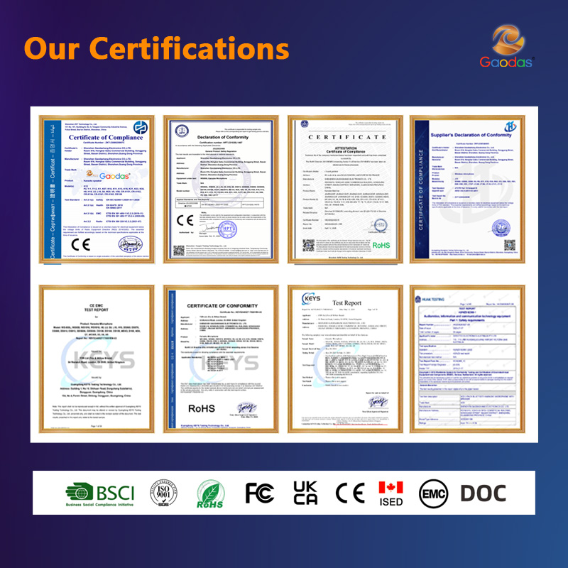 A: We are Shenzhen Gaodas Electronics Co., Ltd., a professional manufacturer with over 15 years of global export experience (since 2009). We specialize in the R&D, production, and export of high-quality audio products, including Bluetooth speakers, Karaoke microphones, and lavalier microphones. We also provide comprehensive OEM/ODM solutions.
