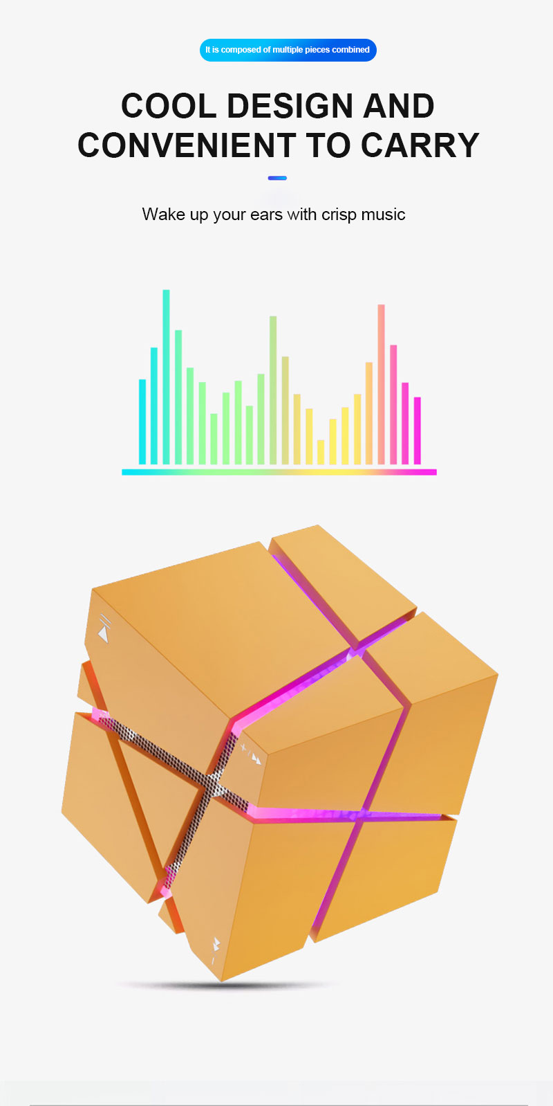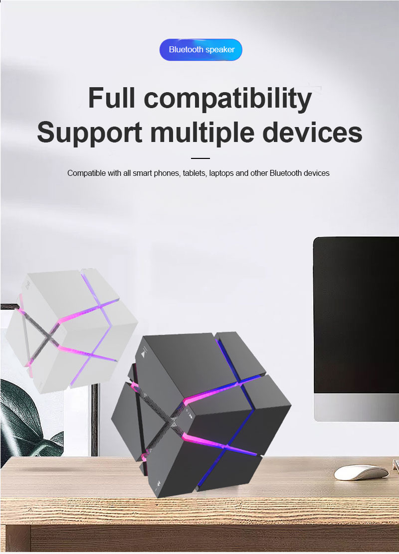 Gaodas T11 Cube Portable Mini Stereo Wireless Speaker RGB LED Lighting TF Card Compatible Battery Powered for Mobile Phone Perfect Gift