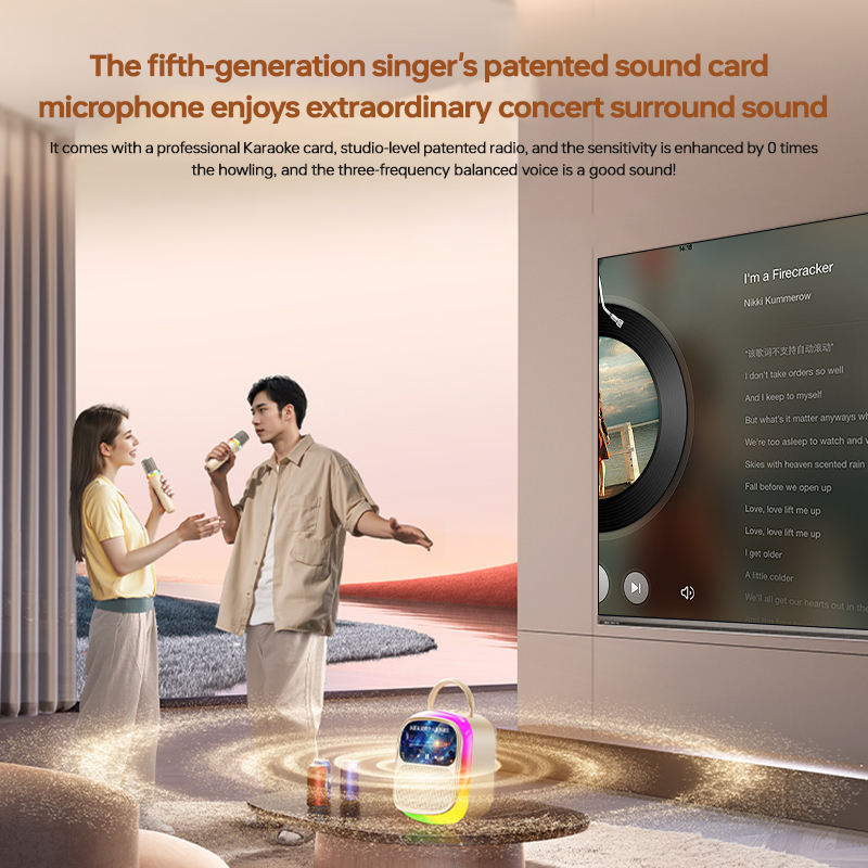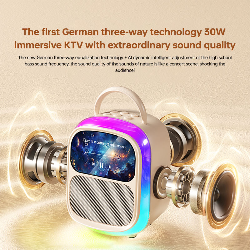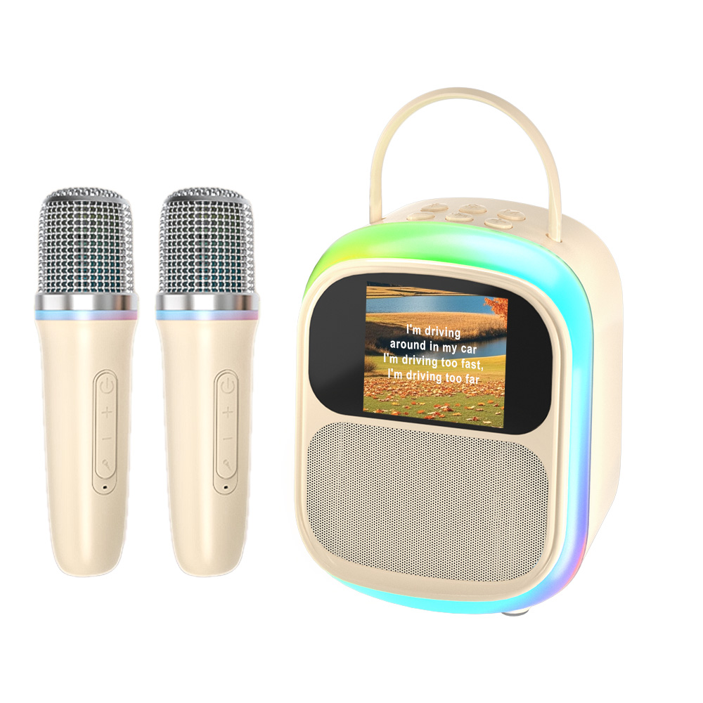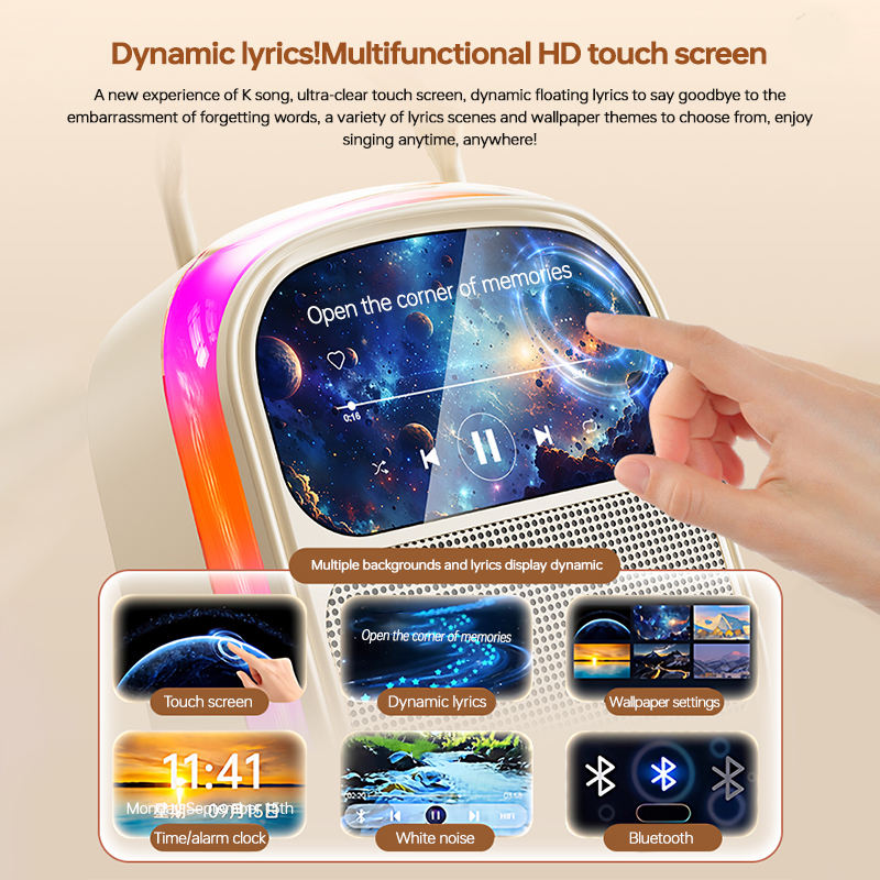 K86 Portable RGB for 5.4 Lyrics Karaoke Speaker Built-in 2 Microphone Singing Display Touch Screen 10W Battery