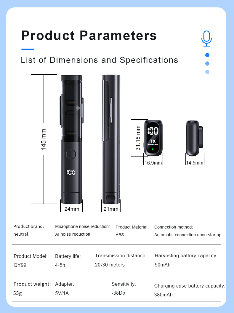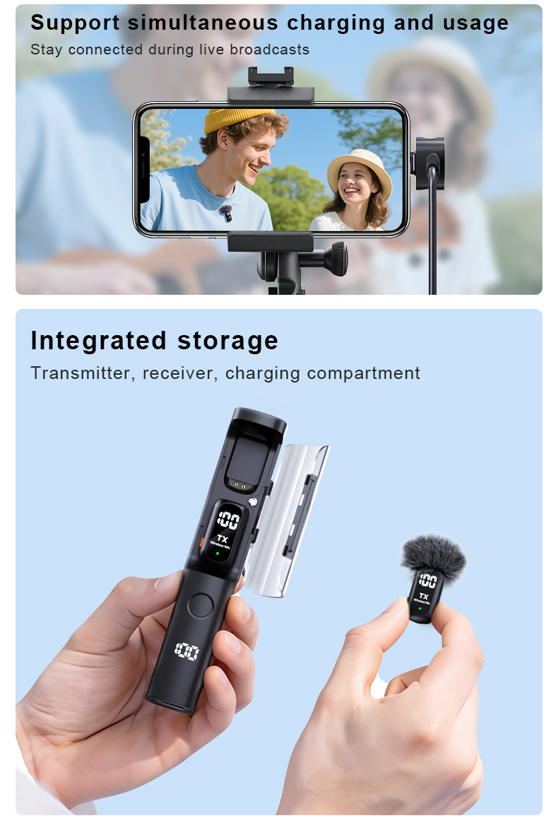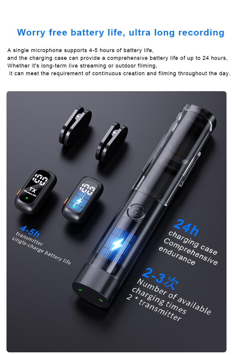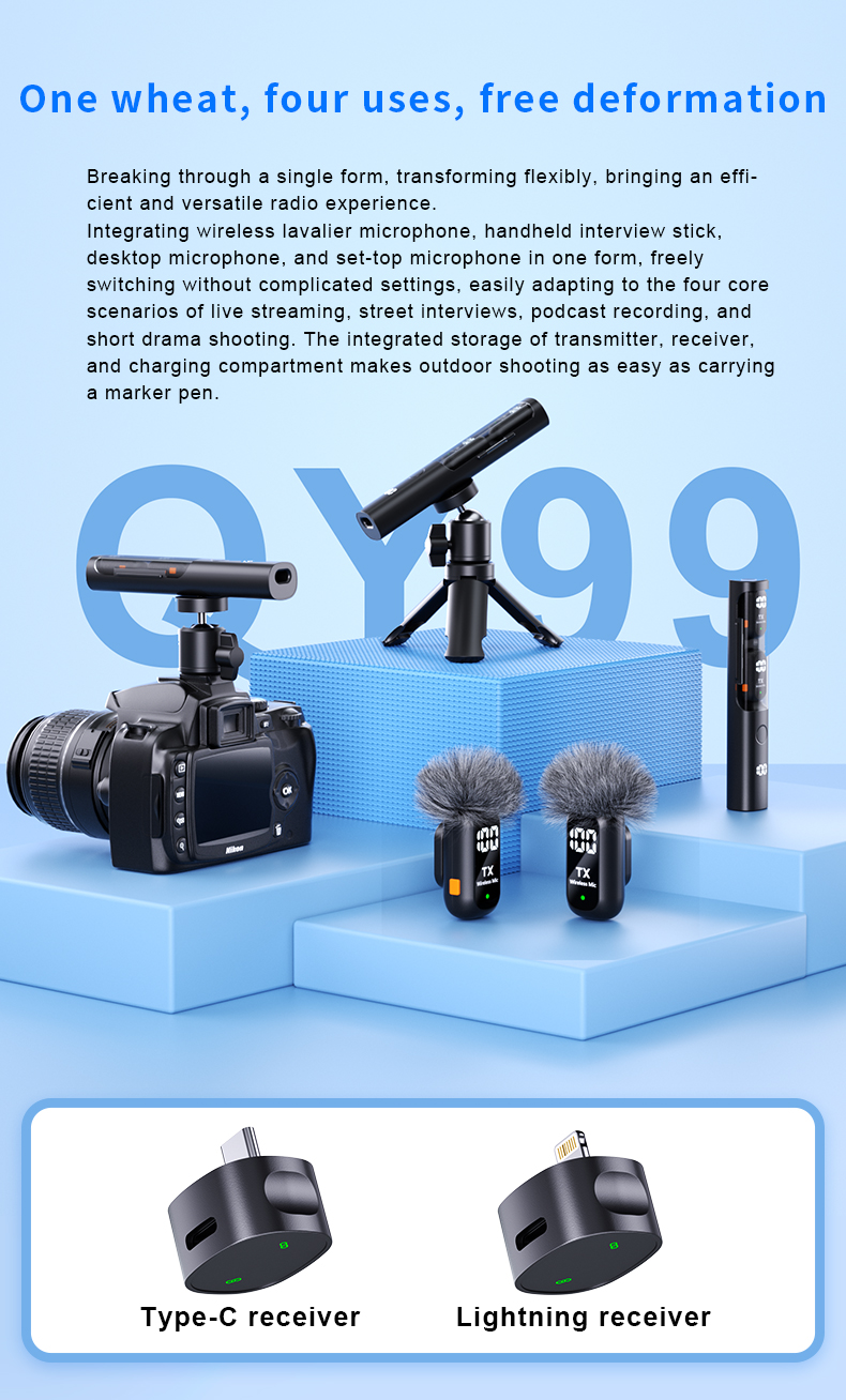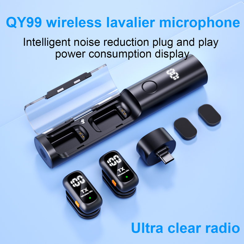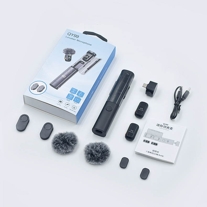 Gaodas QY99 Wireless Lavalier Microphone 1 Transmitter 2 Receivers with Charging Case Noise Reduction for Vlogging & Live Streaming